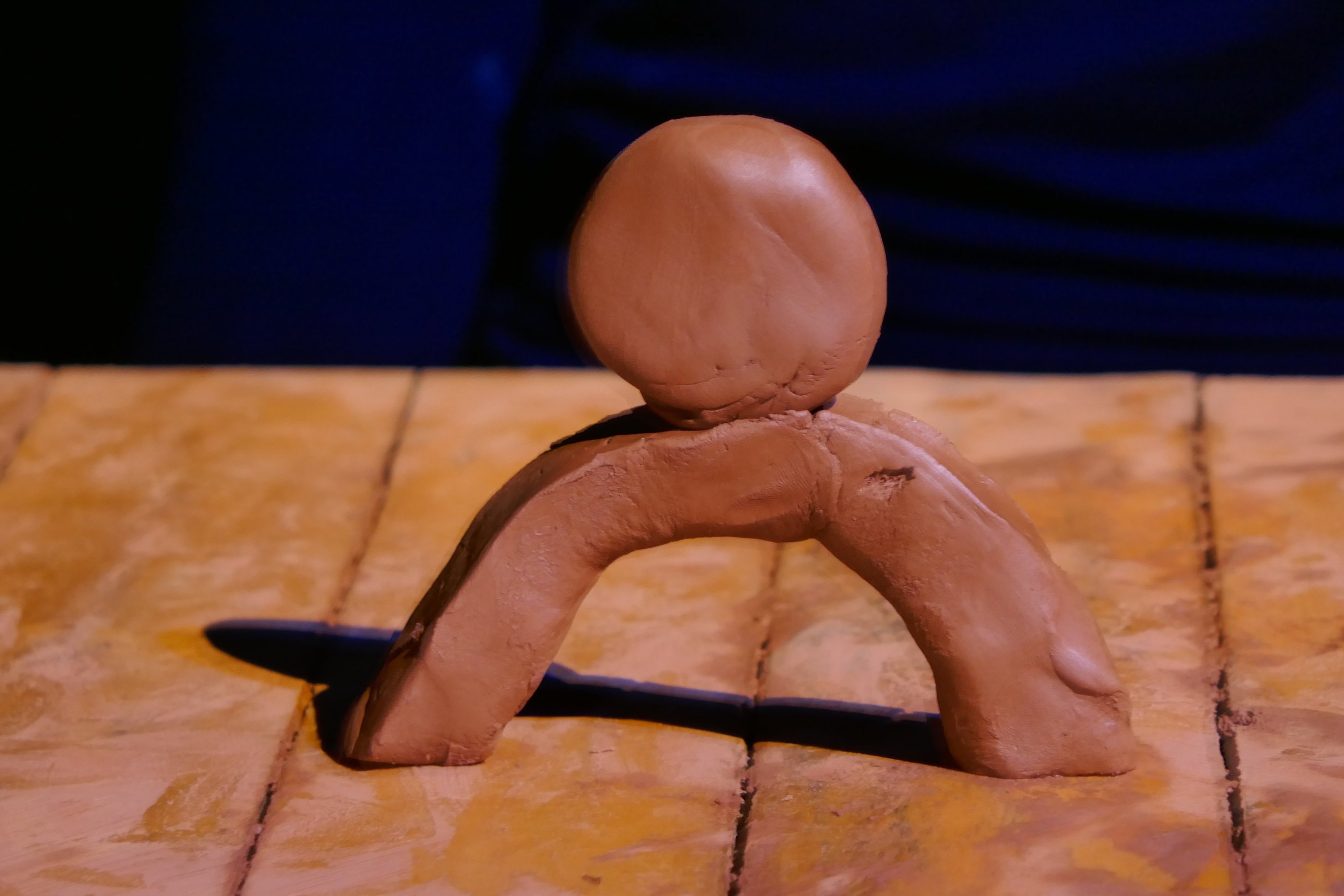 D’un bloc d’argile apparaissent des formes, elles se modèlent et prennent vie sous le regard créateur du spectateur.